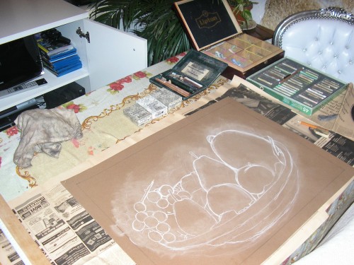 Voici le matériel utilisé, pastel card, pastels sec REMBRANDT, crayons pastel.